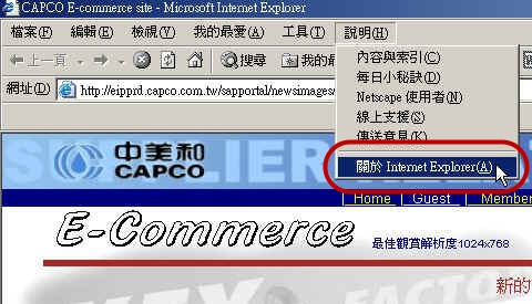 再由上方menu路徑:"說明"的選項點選"關於 Internet Explorer"