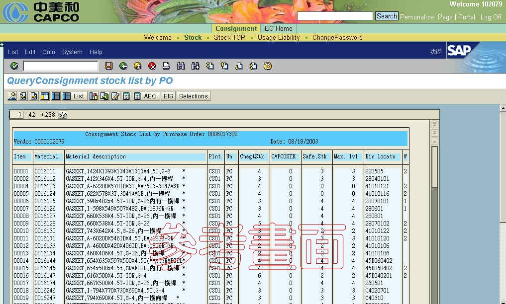 | 連結到後端 SAP ERP 系統,使用 SAP Portal SSO(Single Sign On) WEb Gui技術,可直接透過網際網路執行 ERP 相關交易,例如寄銷 Consignment 廠商,可從網際網路管理該公司放在中美和的寄銷商品