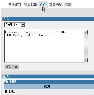 內部註記畫面含該商品的文字註記,及貼上的pc檔案附件